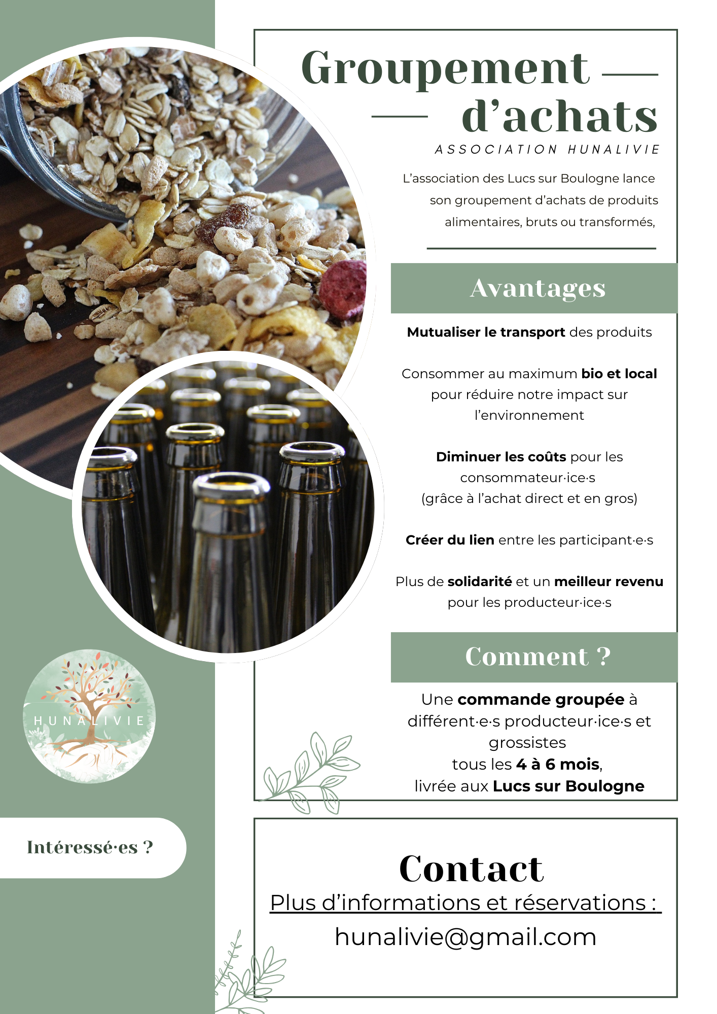 Nous proposons une commande tous les 4 à 6 mois, avec un retrait sur une date donnée, sur le lieu de notre habitat participatif aux Lucs-sur-Boulogne.